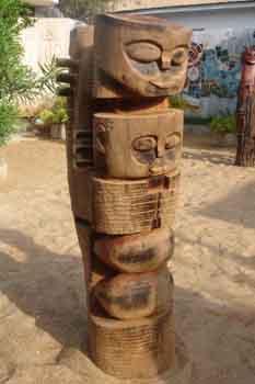 Il y a une continuité en dimension dans les sculptures de Paul Ahyi. Il y a de même une diversité de matériaux Pierre, Ciment Blanc, Bois, Métal, même les céramiques sont dans bien des cas de véritables sculptures. L'artiste a cependant un grand souci de stabilité structurelle de ses oeuvres, par conséquent les plus grandes oeuvres sont uniquement en Ciment renforcé et les proportions sont calculées à cet effet. Les sculptures de Paul Ahyi, comme ses oeuvres graphiques parlent de l'Etre Humain, de l'Homme noir, de l'Afrique et de ses Cultures.Ci-contre, 'Forces Fécondes' fait partie des Oeuvres de grandes dimensions, imposantes par leur présence massive.